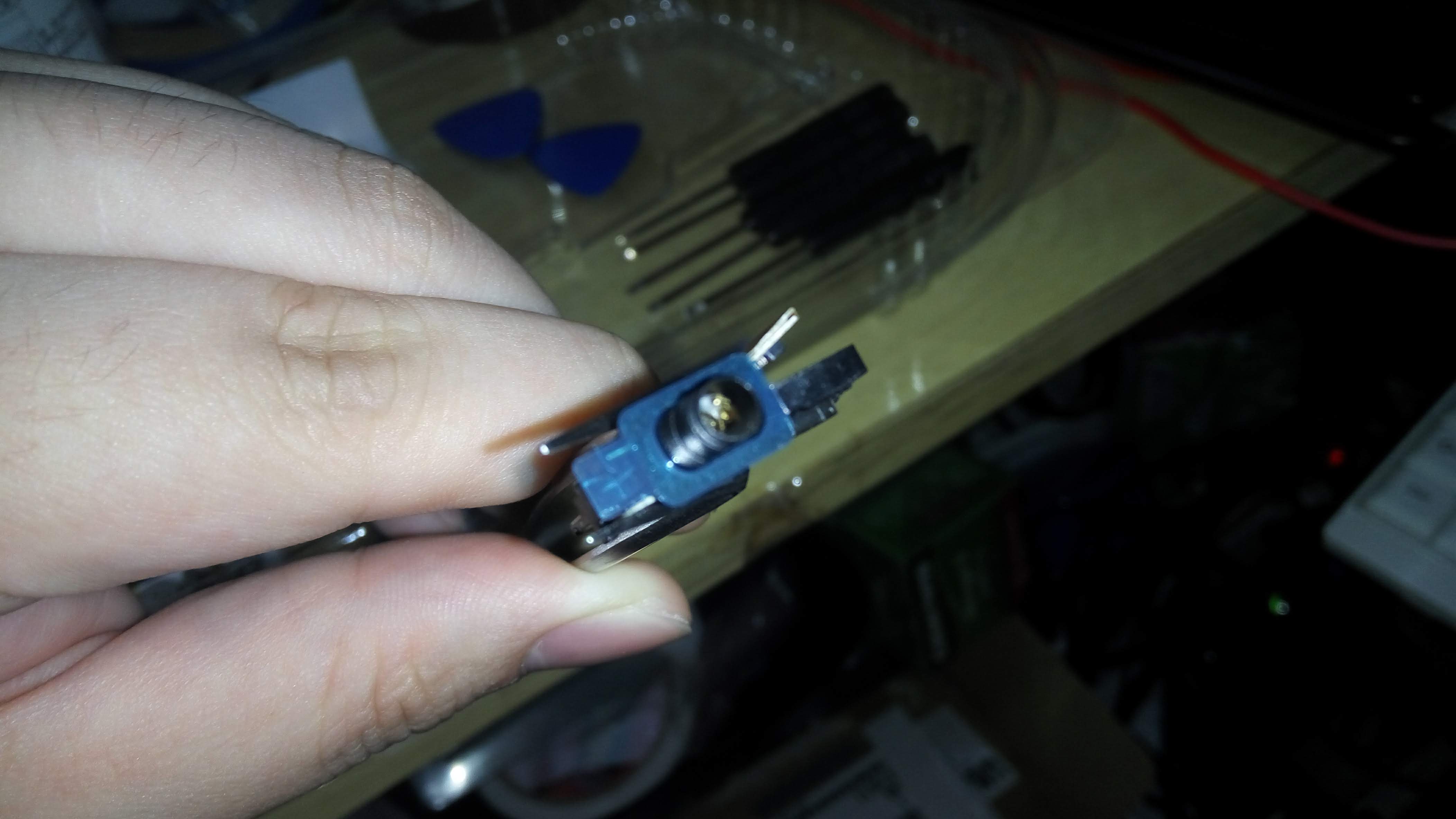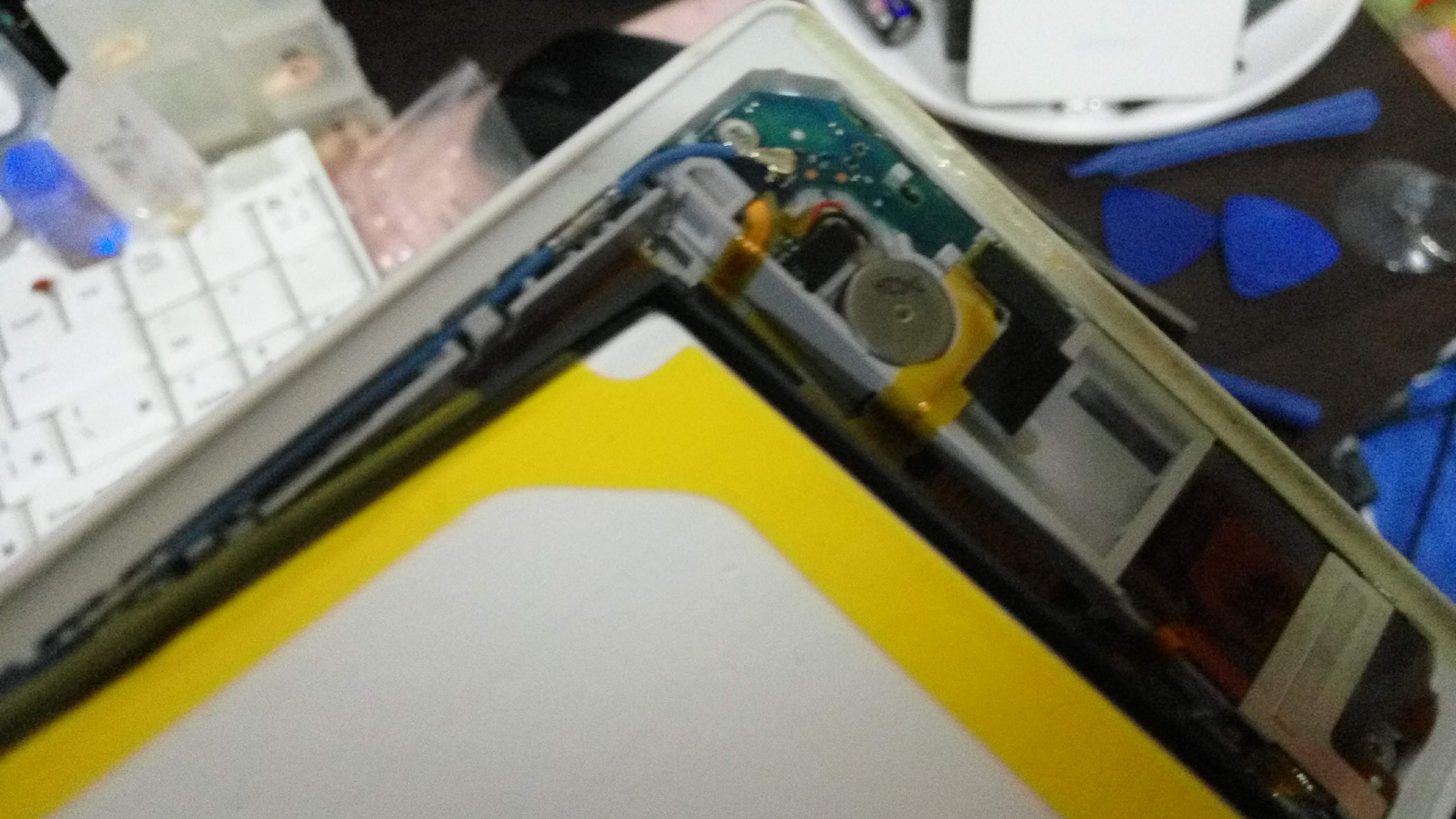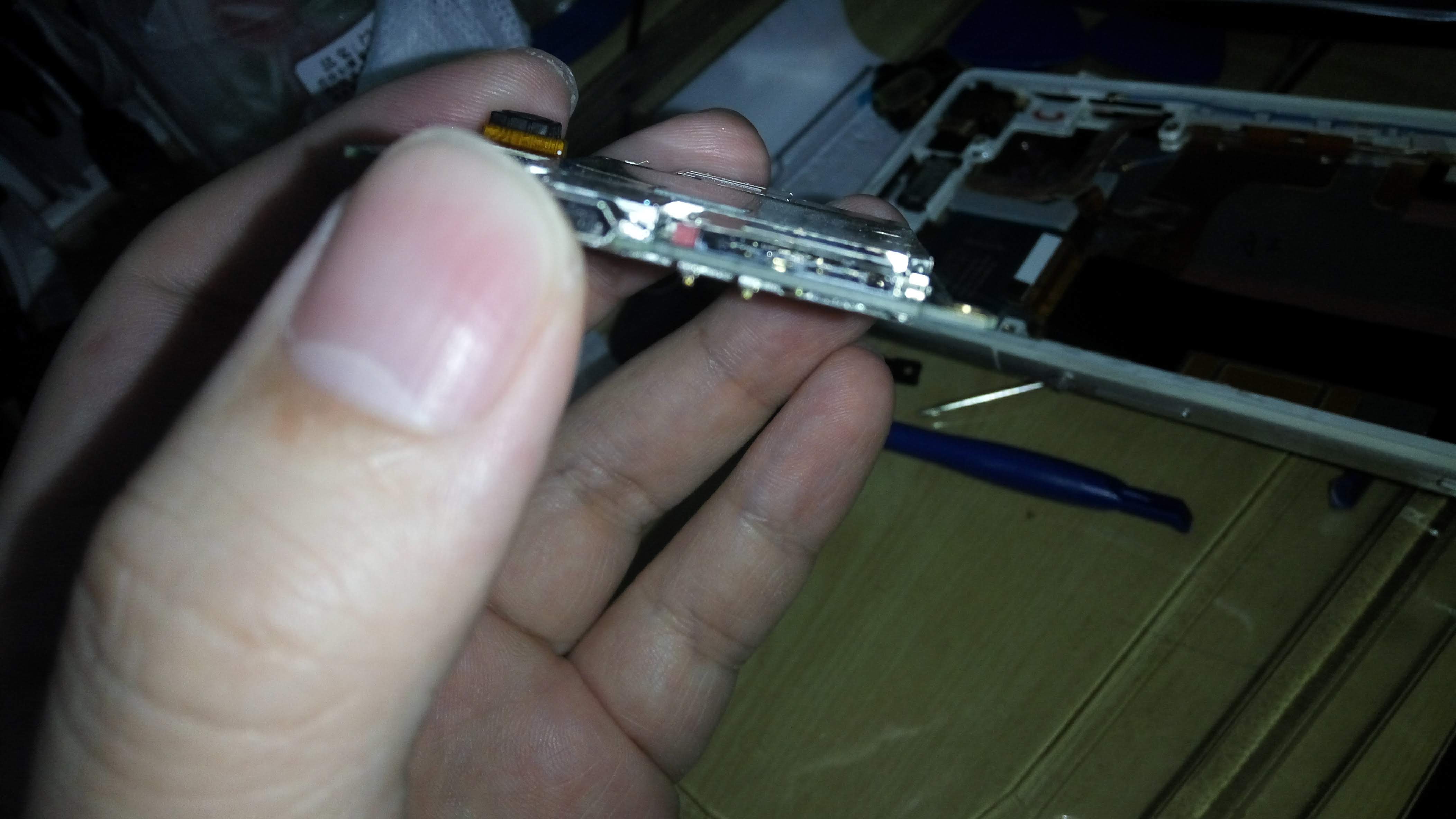 이어폰 단자는 양면 접착제로 프레임과 붙어있다. 끝이 뭉툭한 무언가로 밀어서 뽑아내던가, 열풍기로 접착제를 좀 녹이고 손으로 뽑아보던가 하자. 나는 어차피 고장난 단자 필요없어서 사진처럼 드라이버로 뚫어버렸다.