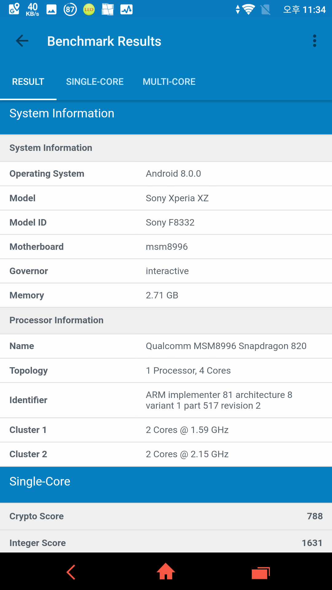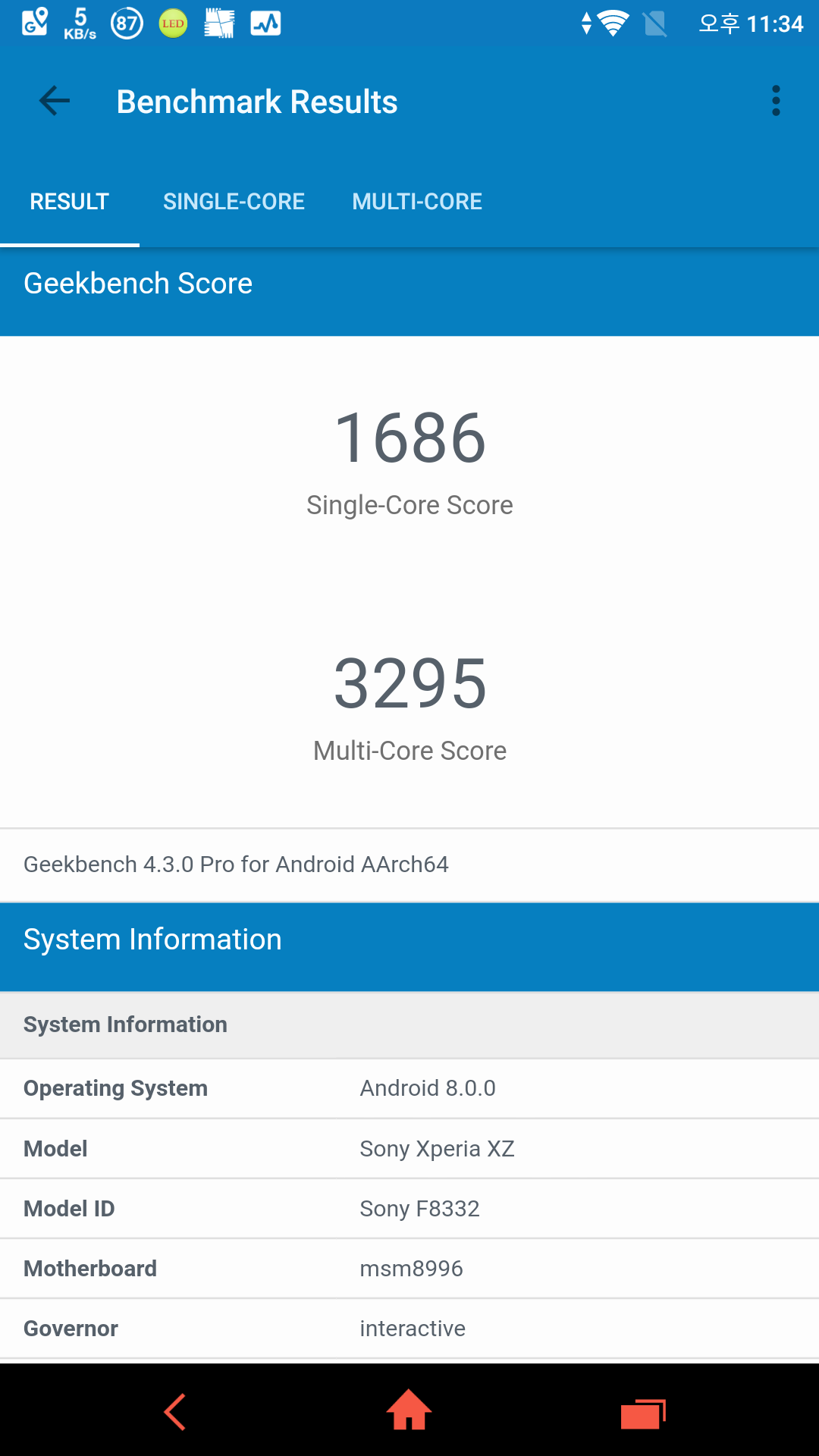 ▲ F8332 GeekBench 4 ▲