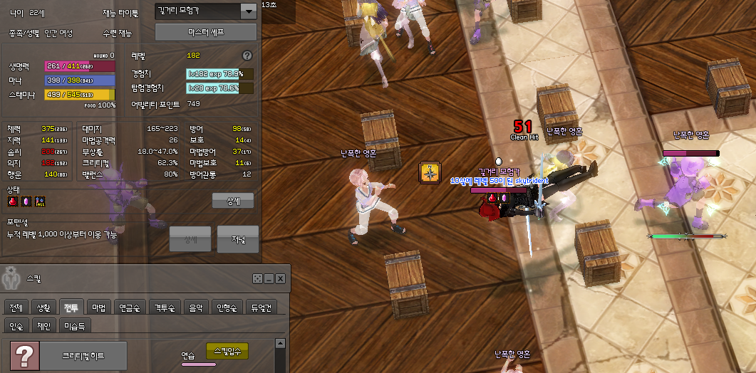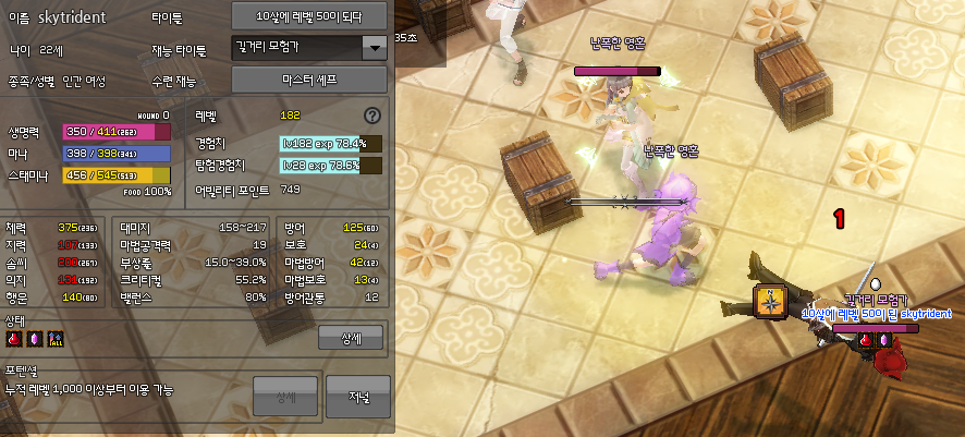 대부분 F~E랭크 스킬들로 구성된 안일함을 약 하루동안 어떻게든 대충.. 맞고.. 버틸.. 만한....