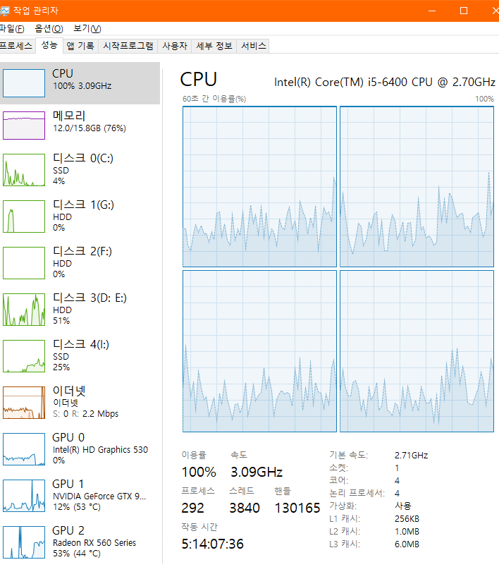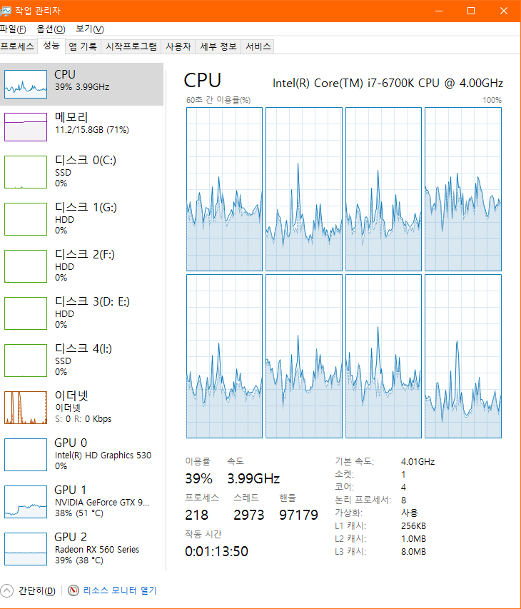 아 근데 터보 터지는걸 못보네요. 아마도 메인보드나 파워의 문제거나 UEFI 설정을 뭘 잘못했거나 그런거같은데.. 분명 터보 켰을텐데.... 음.. 뭐 아무렴 어때요 베이스클럭 잘 나옴 그걸로 됐지. 욕심내고 그러면 안됩니다.