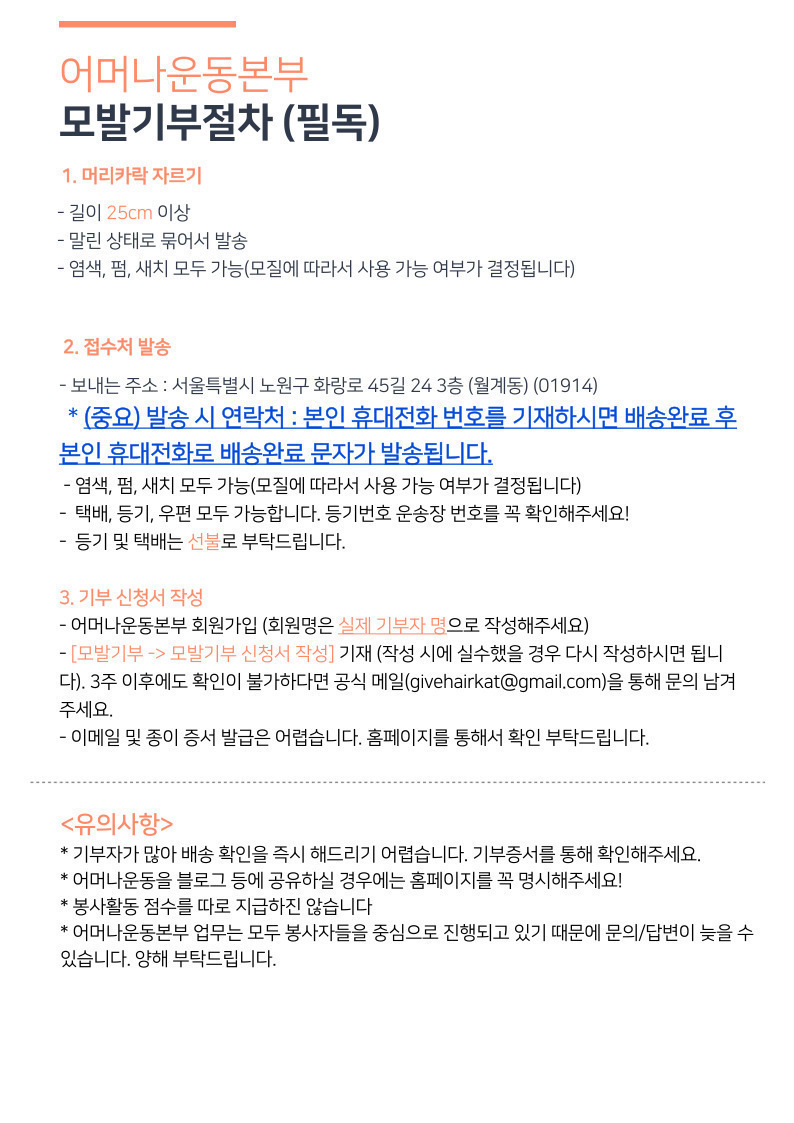 재단 홈페이지 공지사항에서 주의사항 (http://www.givehair.net/bbs/notice/15180) 을 긁어와보자.