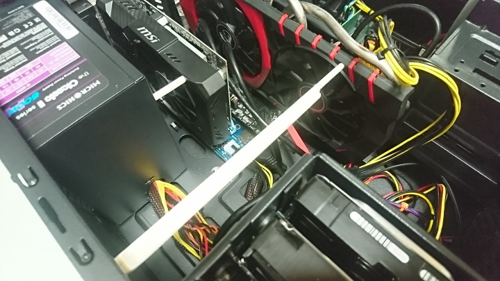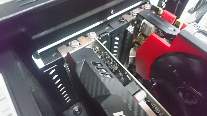 당연히 여기에 우겨넣은 그래픽카드는 PCIe 16레인이 아니라 1레인으로 작동.